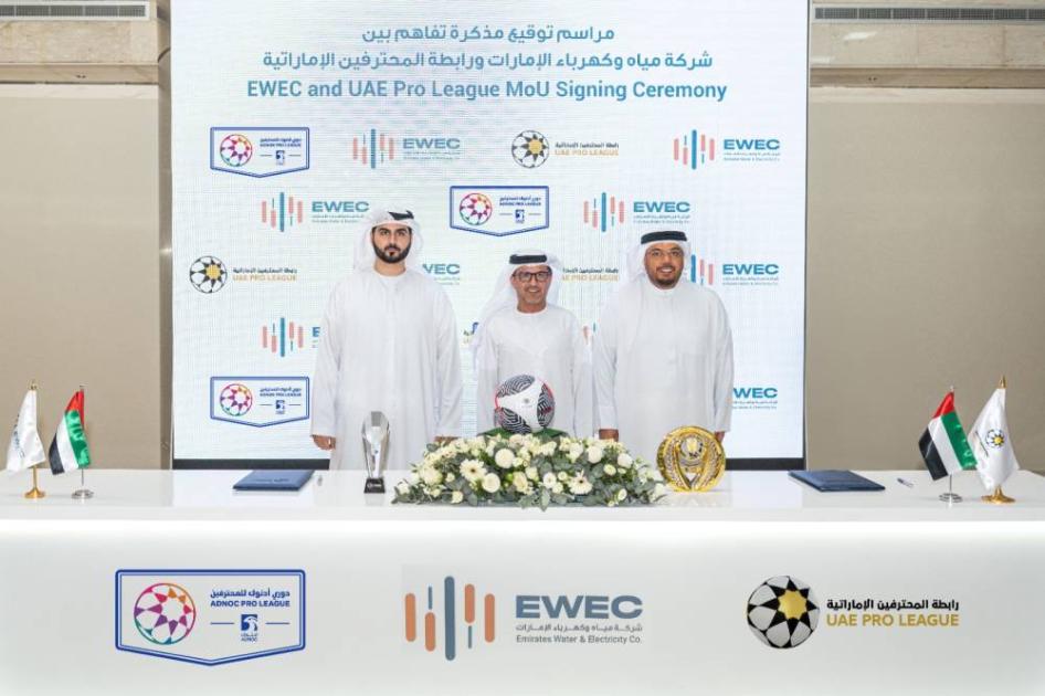 وقعت رابطة المحترفين مذكرة تفاهم، مع شركة مياه وكهرباء الإمارات، الرائدة، في مجال التنسيق المتكامل للتخطيط والشراء والإمداد بالمياه والكهرباء، في جميع أنحاء الدولة، بهدف تعزيز ممارسات الاستدامة، وخفض انبعاثات استهلاك الكهرباء، من خلال الاعتماد على شهادات الطاقة النظيفة في مسابقات رابطة المحترفين.