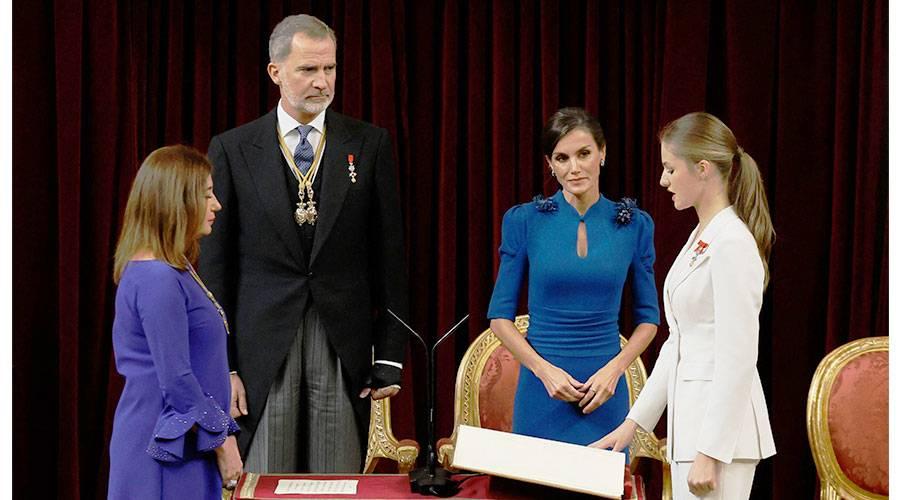 وأدت ليونور التي ارتدت بدلة رسمية بيضاء أنيقة، اليمين على نفس نسخة الدستور التي كان والدها قبلها أدى اليمين عليها قبل 37 عاماً، بحضور الملكة، وأمام رئيسة مجلس النواب فرانسينا أرمينجول.