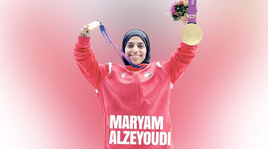 أهدت البطلة مريم الزيودي لاعبة نادي خورفكان للمعاقين والمتوجة بذهبية رمي القرص في الألعاب البارالمبية الآسيوية «هانجتشو»، الإنجاز الذهبي لدولة الإمارات قيادة وشعباً، وإلى صاحب السموّ الشيخ الدكتور سلطان بن محمد القاسمي عضو المجلس الأعلى، حاكم الشارقة، لدعم سموّه المتواصل للرياضة والرياضيين وذوي الإعاقة خصوصاً، كما قدمت الشكر إلى مجلس الشارقة الرياضي واللجنة البارالمبية الوطنية والهيئة العامة للرياضة على دعمهم المستمر لرياضة المعاقين، إلى جانب جهود إدارة النادي والجهاز الفني والتي أثمرت عن هذا النجاح والوصول إلى منصة التتويج.