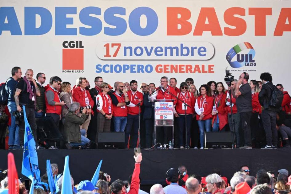 ويتّهم المضربون ميلوني وحكومتها باستخدام الموارد الضئيلة المتاحة للميزانية، لاستقطاب أصوات لصالحها مع اقتراب الانتخابات الأوروبية السنة المقبلة، وذلك على حساب العمّال والمتقاعدين. وكُتب على لافتة حملها متظاهرون تجمّعوا في ساحة ديل بوبولو في وسط روما: «ميلوني، الشعب جائع». كما نزل الآلاف إلى شوارع جنوى وميلانو. ويقف اثنان من الاتحادات النقابية الإيطالية الرئيسية الثلاثة، CGIL وUIL، وراء هذا الإضراب. ويتّهمان الحكومة باقتطاع موارد من قطاعات رئيسية مثل الصحة والتعليم والصناعة.