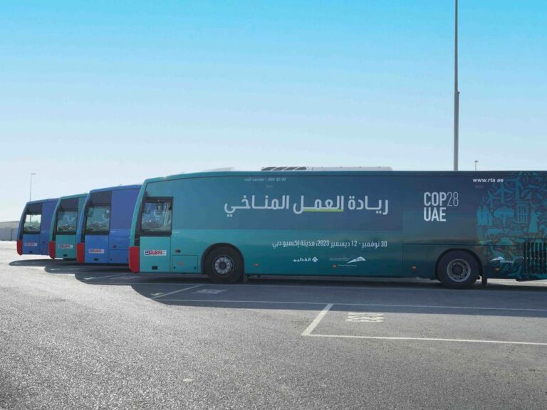 سيكون هناك خدمات نقل مجانية لمندوبي المنطقة الزرقاء القادمين من أبوظبي من وإلى موقع (كوب 28)، وسيتم تشغيل خدمة حافلات النقل العام في الفترة من 21 نوفمبر إلى 13 ديسمبر.