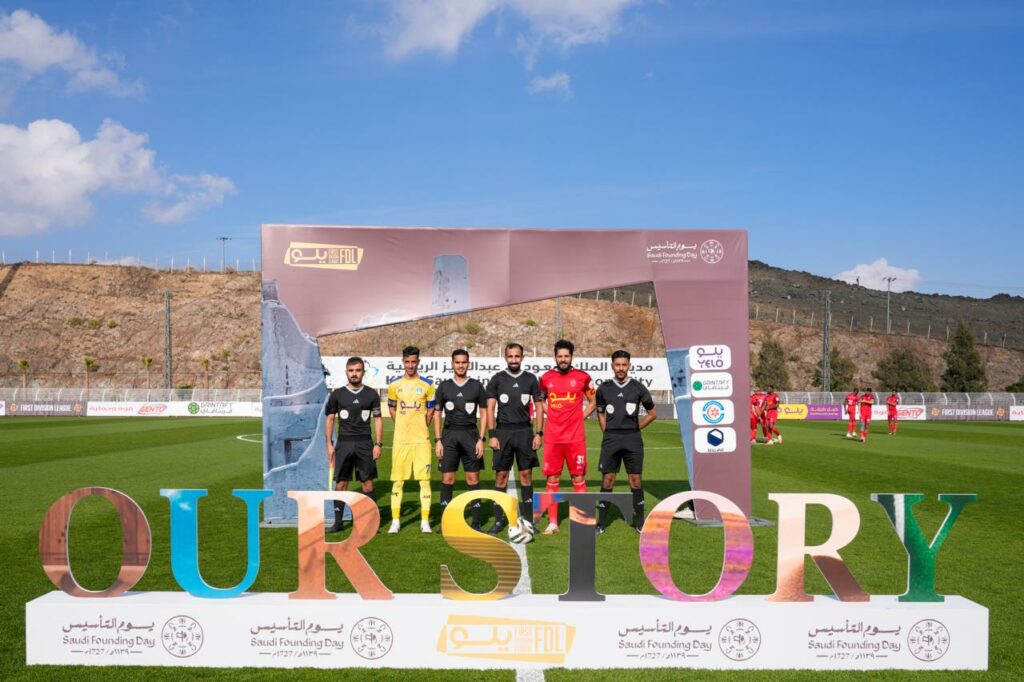 شهدت الجولة الثانية والعشرون من دوري يلو مواكبة من رابطة دوري الدرجة الأولى للمحترفين بمناسبة إطلاق “جولة يوم التأسيس” من سمو وزير الرياضة الأمير عبدالعزيز بن تركي الفيصل. وحرصت رابطة دوري الدرجة الأولى للمحترفين على تجهيز ملاعبها وتقديم الشعارات بهوية يوم التأسيس ووفرت رابطة الدوري الويلكم بورد الترحيبي إضافة لبوديوم والمجسم الذي يحملان شعار يوم التأسيس “وهي العلم السعودي والنخلة والصقر والخيل العربية والسوق” قبل انطلاق جميع لقاءات الجولة في عدة مدن مختلفة لالتقاط الصور التذكارية بين اللاعبين والحكام. وقدمت الرابطة شارة القيادة للاعبين الفرق بشعار يوم التأسيس إضافة لتوفير أدوات الرياضية في الملعب من بينها ملابس خاصة ارتدوها أشبال جمع الكرة في الملعب وغيرها من الأدوات التي حملت هوية يوم التأسيس للمملكة العربية السعودية والذي سيكون يوم 22 فبراير 2024. يذكر أن وزير الرياضة، الأمير عبد العزيز بن تركي الفيصل قد اعتمد، الجولة 22 في دوري الدرجة الأولى بجولة يوم التأسيس #جولة_يوم_التأسيس، اضافة للجولات القادمة من دوري روشن ودوري الدرجة الثانية.