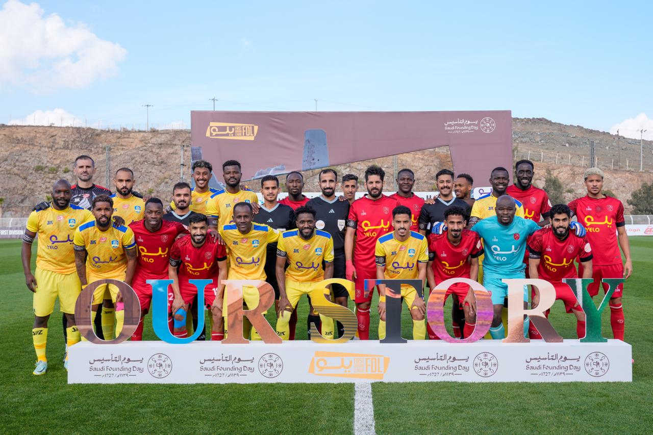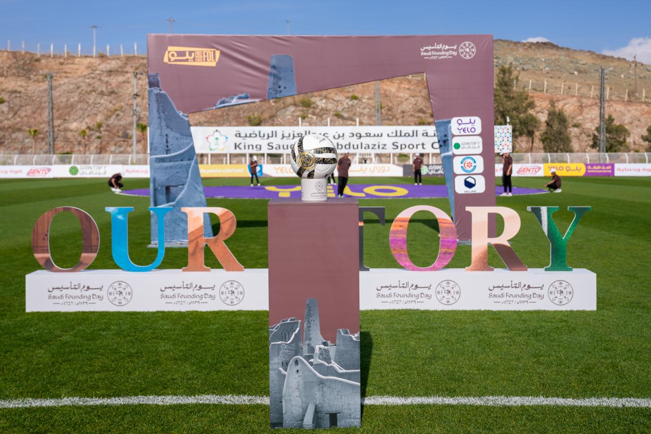 شهدت الجولة الثانية والعشرون من دوري يلو مواكبة من رابطة دوري الدرجة الأولى للمحترفين بمناسبة إطلاق “جولة يوم التأسيس” من سمو وزير الرياضة الأمير عبدالعزيز بن تركي الفيصل. وحرصت رابطة دوري الدرجة الأولى للمحترفين على تجهيز ملاعبها وتقديم الشعارات بهوية يوم التأسيس ووفرت رابطة الدوري الويلكم بورد الترحيبي إضافة لبوديوم والمجسم الذي يحملان شعار يوم التأسيس “وهي العلم السعودي والنخلة والصقر والخيل العربية والسوق” قبل انطلاق جميع لقاءات الجولة في عدة مدن مختلفة لالتقاط الصور التذكارية بين اللاعبين والحكام. وقدمت الرابطة شارة القيادة للاعبين الفرق بشعار يوم التأسيس إضافة لتوفير أدوات الرياضية في الملعب من بينها ملابس خاصة ارتدوها أشبال جمع الكرة في الملعب وغيرها من الأدوات التي حملت هوية يوم التأسيس للمملكة العربية السعودية والذي سيكون يوم 22 فبراير 2024. يذكر أن وزير الرياضة، الأمير عبد العزيز بن تركي الفيصل قد اعتمد، الجولة 22 في دوري الدرجة الأولى بجولة يوم التأسيس #جولة_يوم_التأسيس، اضافة للجولات القادمة من دوري روشن ودوري الدرجة الثانية.