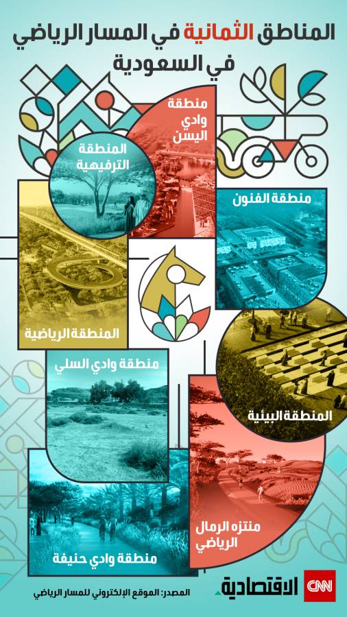 المسار الرياضي.. أحد مشاريع رؤية 2030 في السعودية وأكبر متنزه طولي في العالم إذ يتجاوز طوله الإجمالي 135 كيلومتراً، ويوصل شرق الرياض بغربها في خط مستقيم من وادي حنيفة إلى وادي السلي بهدف دعم نمو السياحة الداخلية في المملكة وتحقيق مستهدفات الرؤية.