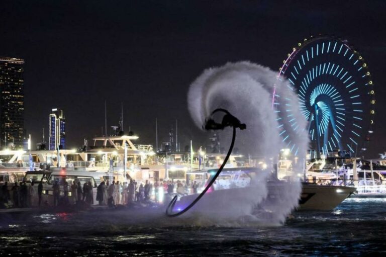 توج راشد علي صالح الملا ومانع حبيب المرزوقي بلقبي منافسات العرض الليلي للدراجات المائية لفئتي الاستعراض الحر -فري ستايل ،والألواح الطائرة -هايدروفويل والتي نظمها بنجاح نادي دبي الدولي للرياضات البحرية.
