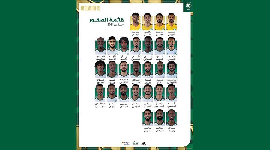 أعلنت إدارة المنتخب السعودي الأول قائمة الأخضر لمباراتي طاجيكستان في 21 مارس /آذار الحالي ذهاباً على ملعب الأول بارك في الرياض و26 منه إياباً في على الملعب المركزي بمدينة دوشنبه ضمن التصفيات المؤهلة إلى مونديال 2026، وتمت دعوة 28 لاعباً للتجمع اعتباراً من 17 مارس في الرياض، ولم تشهد القائمة ورود أي اسم من السداسي الذي تمت معاقبته بعد تصريح مانشيني الشهير في 15 يناير الماضي.