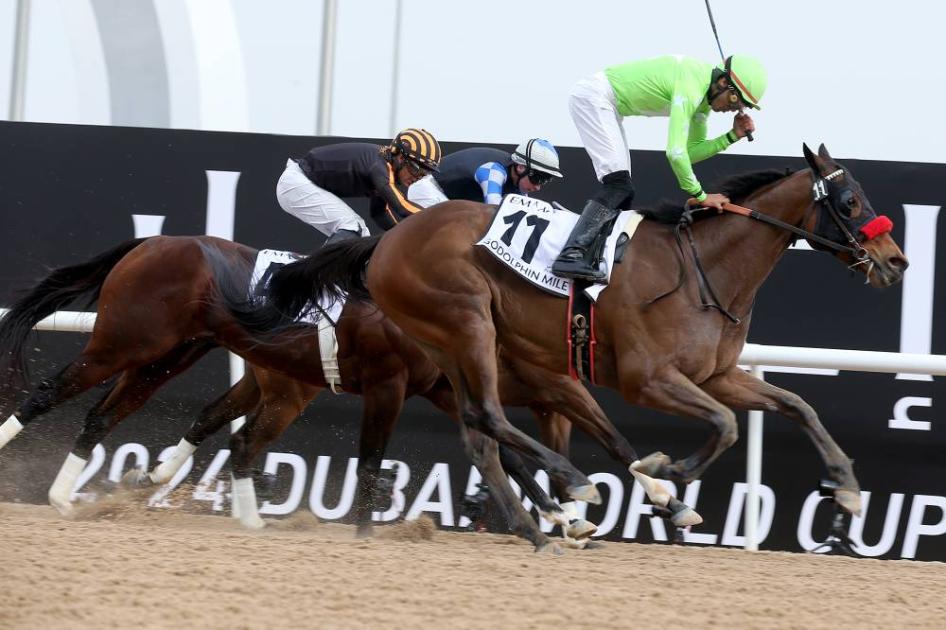 نجح الجواد الأمريكي «تو ريفرز أوفر» في التتويج ببطولة «جودلفين مايل» ثاني أشواط أمسية كأس دبي العالمي، واستطاع الحصان البالغ من العمر 4 سنوات الفوز بالشوط المخصص للخيول المهجنة الأصيلة، الفئة الثانية لمسافة 1600 متر على المضمار الرملي، والبالغ إجمالي جوائزه مليون دولار، برعاية «إعمار»، وشارك فيه 13 جواداً.