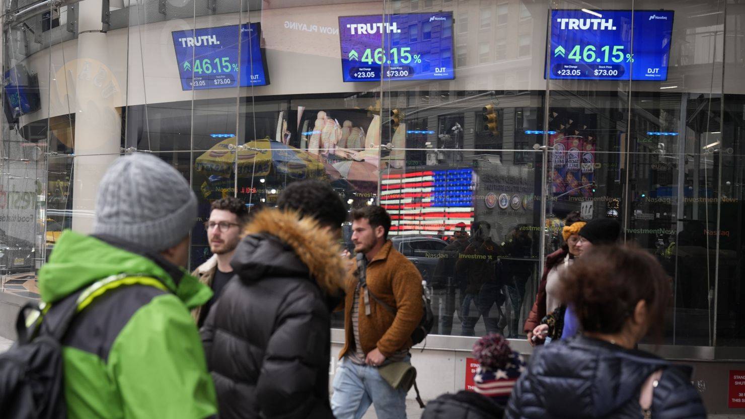 ونتيجة لذلك، انخفضت قيمة حصة دونالد ترامب في المجموعة إلى 3.3 مليار دولار مقارنة بـ4.9 مليار دولار نهاية الأسبوع الماضي.