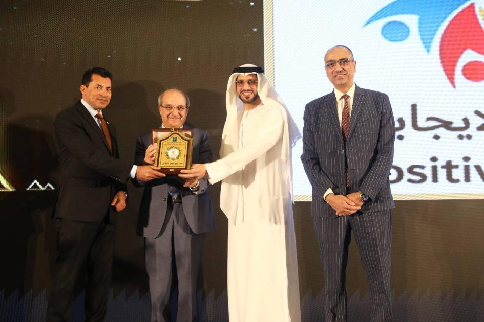 وسلم الدكتور أشرف صبحي وزير الشباب والرياضة المصري، رئيس المكتب التنفيذي لمجلس وزراء الشباب والرياضة العرب، الجائزة إلى صالح السعدي نائب سفير الدولة لدى جمهورية مصر العربية، نيابة عن شرطة دبي وذلك خلال أعمال المؤتمر الدولي (موف ويك) الذي استضافته القاهرة، بحضور الدكتور موجانز كريكبي رئيس الاتحاد الدولي للثقافة الرياضية، وفيصل غسال الوزير المفوض، مدير إدارة الرياضة في جامعة الدول العربية، وعدد من السفراء والخبراء الرياضيين والإعلاميين العرب.