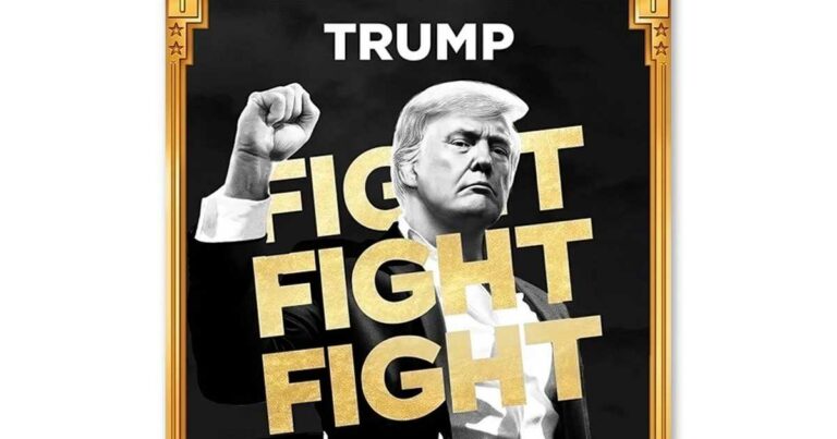 وتم وصف الأصل الرقمي الجديد على الموقع الإلكتروني مصحوباً بمنشور للتواصل الاجتماعي بأنه “الرمز الرسمي الوحيد لترمب”، وعليه رسم توضيحي يعرض أول صورة بُثت له في أول رد فعل له بعد محاولة اغتياله.