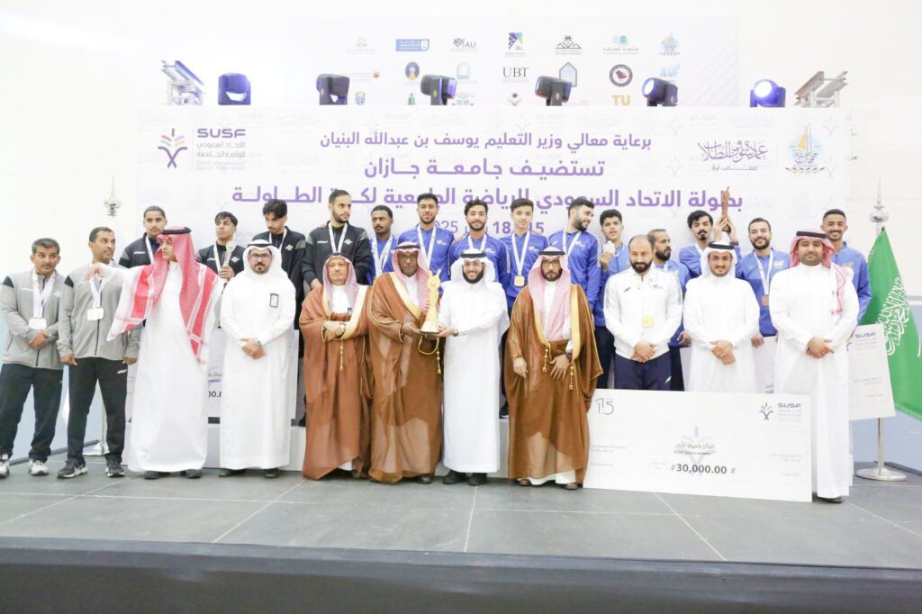 وهنأ رئيس الاتحاد الدكتور خالد المزيني الجميع بما حققوه، مثمنًا لجامعة جازان الاستضافة المميزة من جميع الجوانب، مؤكدًا على المستويات المميزة التي شهدتها البطولة التي أقيمت بمشاركة ٣٠ جامعة و١٣٨ طالبًا من نخبة لاعبي المملكة.