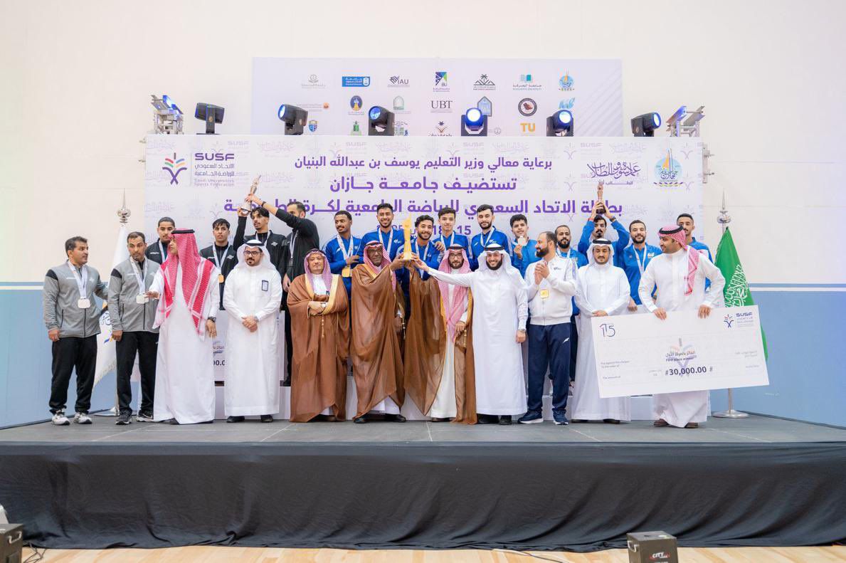 وهنأ رئيس الاتحاد الدكتور خالد المزيني الجميع بما حققوه، مثمنًا لجامعة جازان الاستضافة المميزة من جميع الجوانب، مؤكدًا على المستويات المميزة التي شهدتها البطولة التي أقيمت بمشاركة ٣٠ جامعة و١٣٨ طالبًا من نخبة لاعبي المملكة.