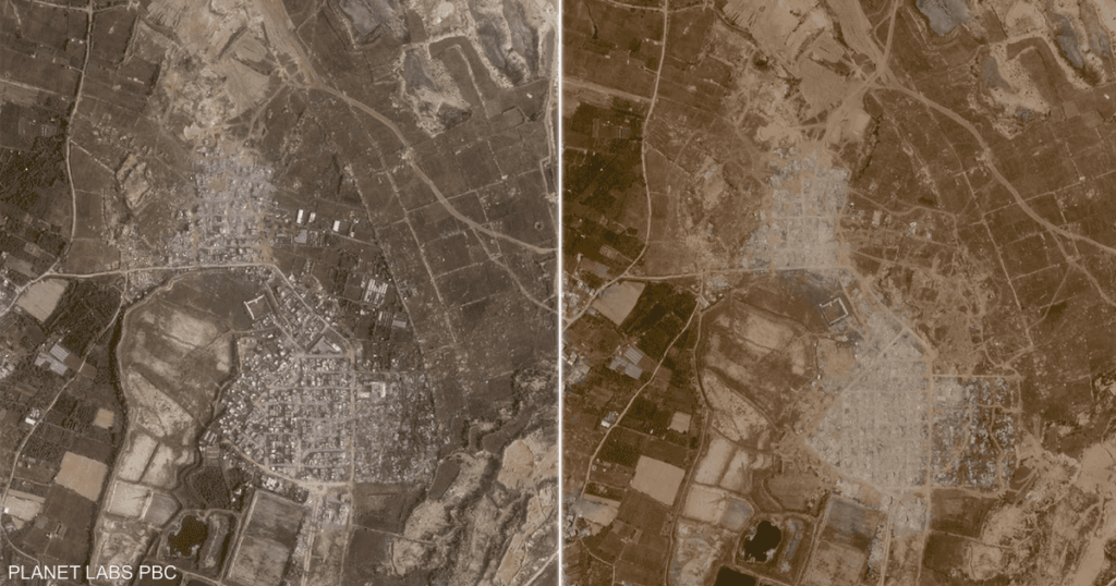 وسوّى الجيش الإسرائيلي قرية أم النصر بالأرض بين 29 و31 مارس، وفقا لصور أقمار اصطناعية حللتها شبكة “ABC News”.