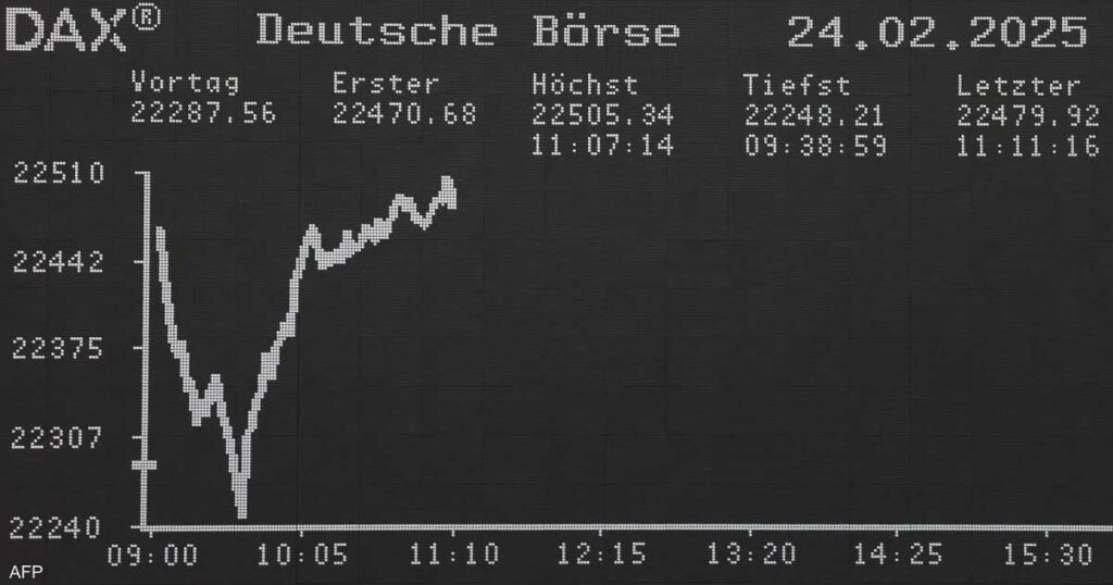 وفي مطلع أبريل الماضي انخفض مؤشر داكس إلى أقل من 18490 نقطة بعد أن أعلن الرئيس الأميركي دونالد ترامب عن حزم رسوم جمركية ضخمة وردت الصين بإجراءات مضادة.