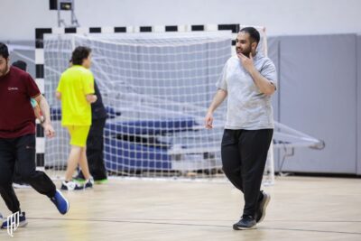 وشهدت صالة النادي مباراة بين ذوي الإعاقة مع مشاركة الكسار والعويرضي، حيث كانت مليئة بالإثارة والتنافس، وتألق الحارس الماليزي ماريو الذي برع في التصدى للعديد من الكرات التي وجهت نحو مرماه.