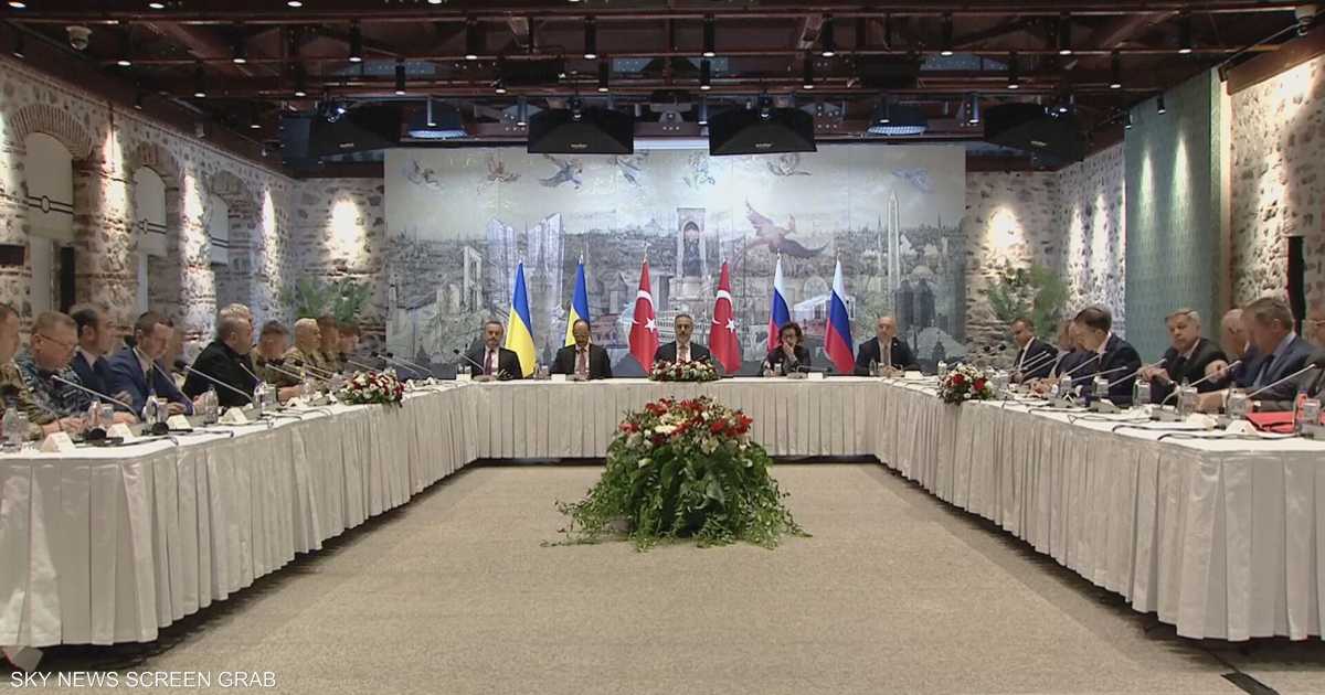 وأظهرت لقطات بثها التلفزيون التركي على الهواء مباشرة، اجتماع وفدي التفاوض الروسي والأوكراني إلى جانب وفد تركي، ضمن محادثات سلام تعد الأولى من نوعها منذ مارس 2022، أي بعد شهر من بدء الهجوم العسكري الروسي على أوكرانيا.