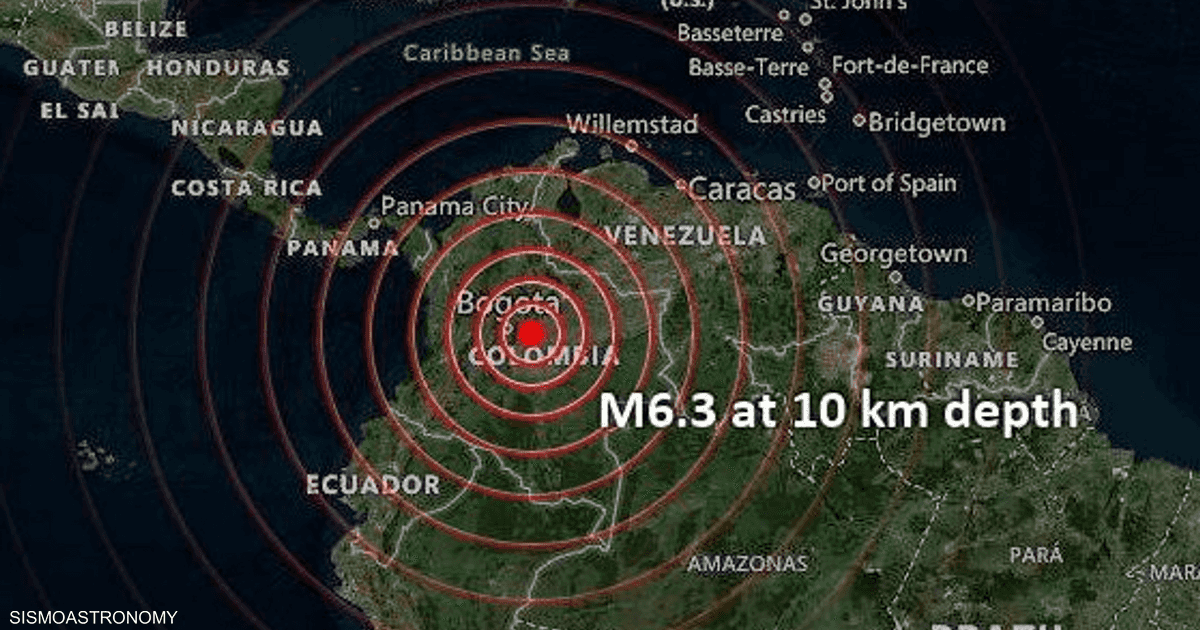 وقال المعهد الأميركي إن الزلزال وقع في الساعة 9,08 بالتوقيت المحلي قرب مدينة باراتيبوينو في وسط كولومبيا، على بعد نحو 170 كيلومترا شرق بوغوتا.