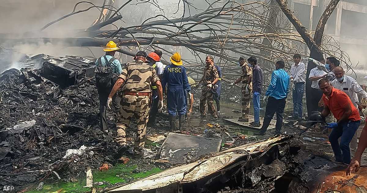 وأظهرت الصور عبر القنوات التلفزيونية المحلية تصاعد الدخان من موقع الحادث بالقرب من المطار في أحمد باد.