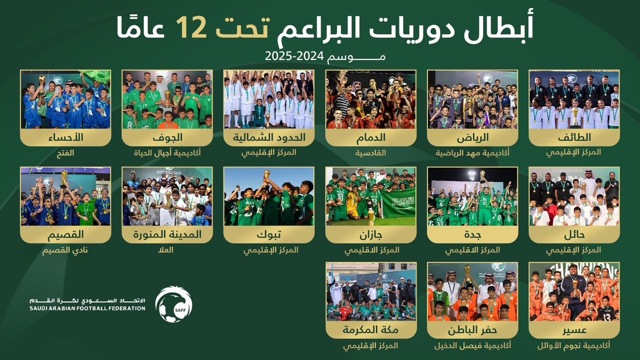 اختتمت إدارة البراعم في الاتحاد السعودي لكرة القدم الموسم الثاني من دوري البراعم تحت 12 عامًا، والموسم الأول من دوري البراعم تحت 11 عامًا، وسط مشاركة واسعة من الأندية والأكاديميات والأندية الخاصة ومراكز التدريب.