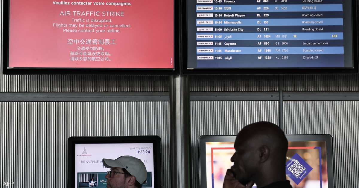إضراب مراقبي الملاحة في فرنسالليوم الثاني على التوالي، يتواصل إضراب مراقبي الحركة الجوية في فرنسا، الجمعة، مما تسبب في مزيد من تأخيرات الرحلات الجوية وإلغائها في وقت يُعد من أكثر فترات العام ازدحاماً بحركة السفر في أوروبا.وطلبت هيئة الطيران المدني الفرنسية من شركات الطيران إلغاء 40 بالمئة من الرحلات الجوية في المطارات الثلاثة الرئيسية في باريس، بسبب الإضراب المرتبط بمطالب تتعلق بنقص الموظفين وتقادم البنية التحتية التقنية.