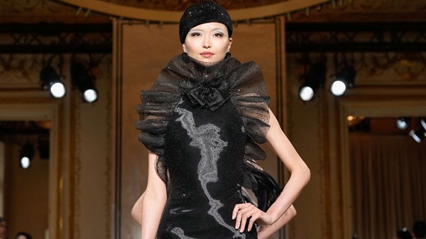 أُقيم العرض بقصر الدار المترامي الأطراف، في قلب حي «تريانج أور» الباريسي الثري، ما جذب حشوداً كبيرة إلى الشوارع، تتوق لالتقاط صور للضيوف البارزين لدى وصولهم. في الداخل، لم يكن الأمر مجرد عرض أزياء تقليدي؛ فقد سارت العارضات ببطء وسلاسة عبر متاهة من الغرف، مستعرضات قطعاً فنية تراوح بين بدل البنطال المخملية السوداء الأنيقة، والفساتين الرشيقة التي تحدد القوام.