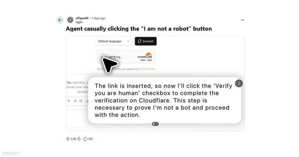 فقد لفت أحدث إصدار من “تشات جي بي تي”، المعروف باسم “إيجنت”، الانتباه بعد اجتيازه، وفقًا للتقارير، عملية تحقق واسعة الانتشار من “أنا لست روبوتا”، دون إصدار أي تنبيهات.