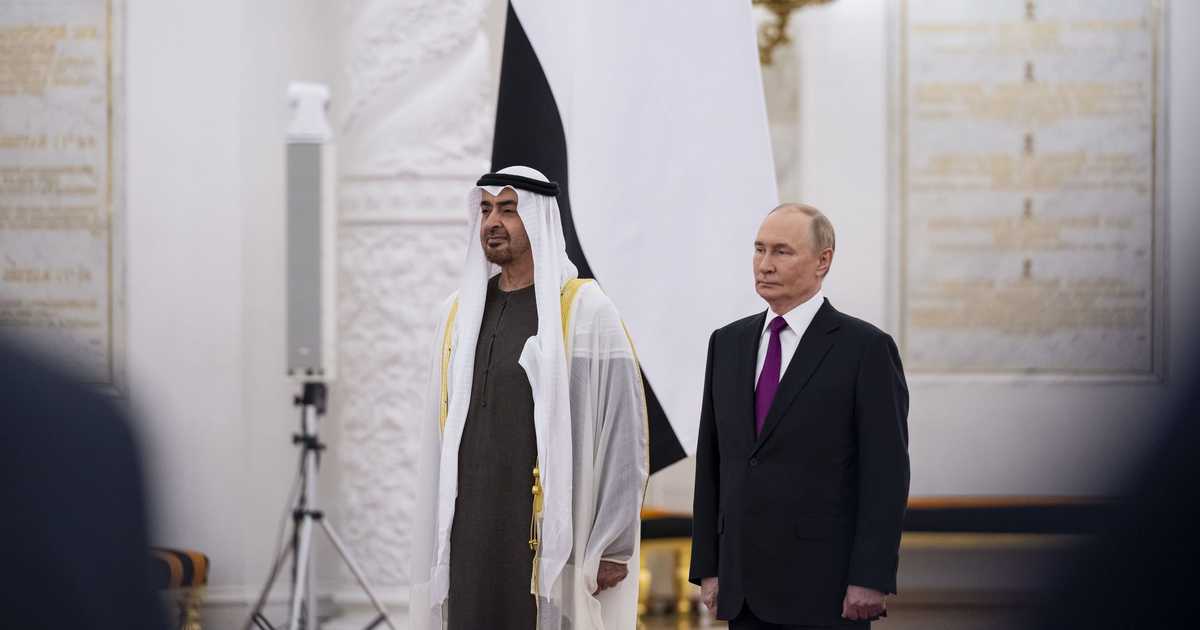 وكان الشيخ محمد بن زايد آل نهيان رئيس دولة الإمارات قد وصل إلى الكرملين في وقت سابق حيث كان في استقباله الرئيس الروسي حيث عزف السلام الوطني للبلدين وصافح كبار مستقبليه فيما صافح الرئيس الروسي الوفد المرافق لرئيس دولة الإمارات.