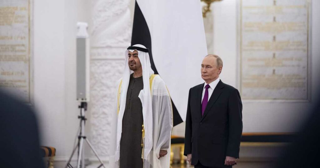 جاء ذلك خلال جلسة المحادثات التي عقدها رئيس دولة الإمارات والرئيس فلاديمير بوتين، الخميس، في الكرملين في إطار الزيارة الرسمية التي يقوم بها الشيخ محمد بن زايد آل نهيان إلى روسيا الاتحادية.