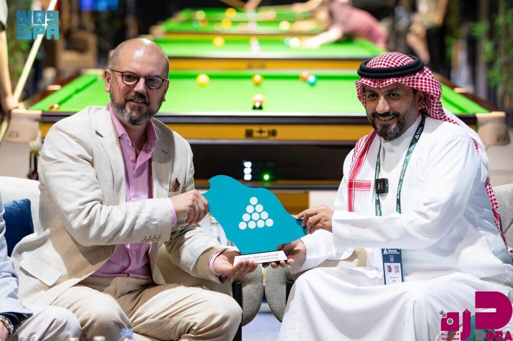 وجرى تدشين الشعار خلال اللقاء الذي جمع رئيس الاتحاد السعودي للبلياردو والسنوكر نايف الجعويني، مع الرئيس التنفيذي لجولة السنوكر العالمية سايمون براونيل، وبطل العالم السابق في السنوكر كين دوهرتي، ولاعب المنتخب السعودي للسنوكر زياد القبّاني.