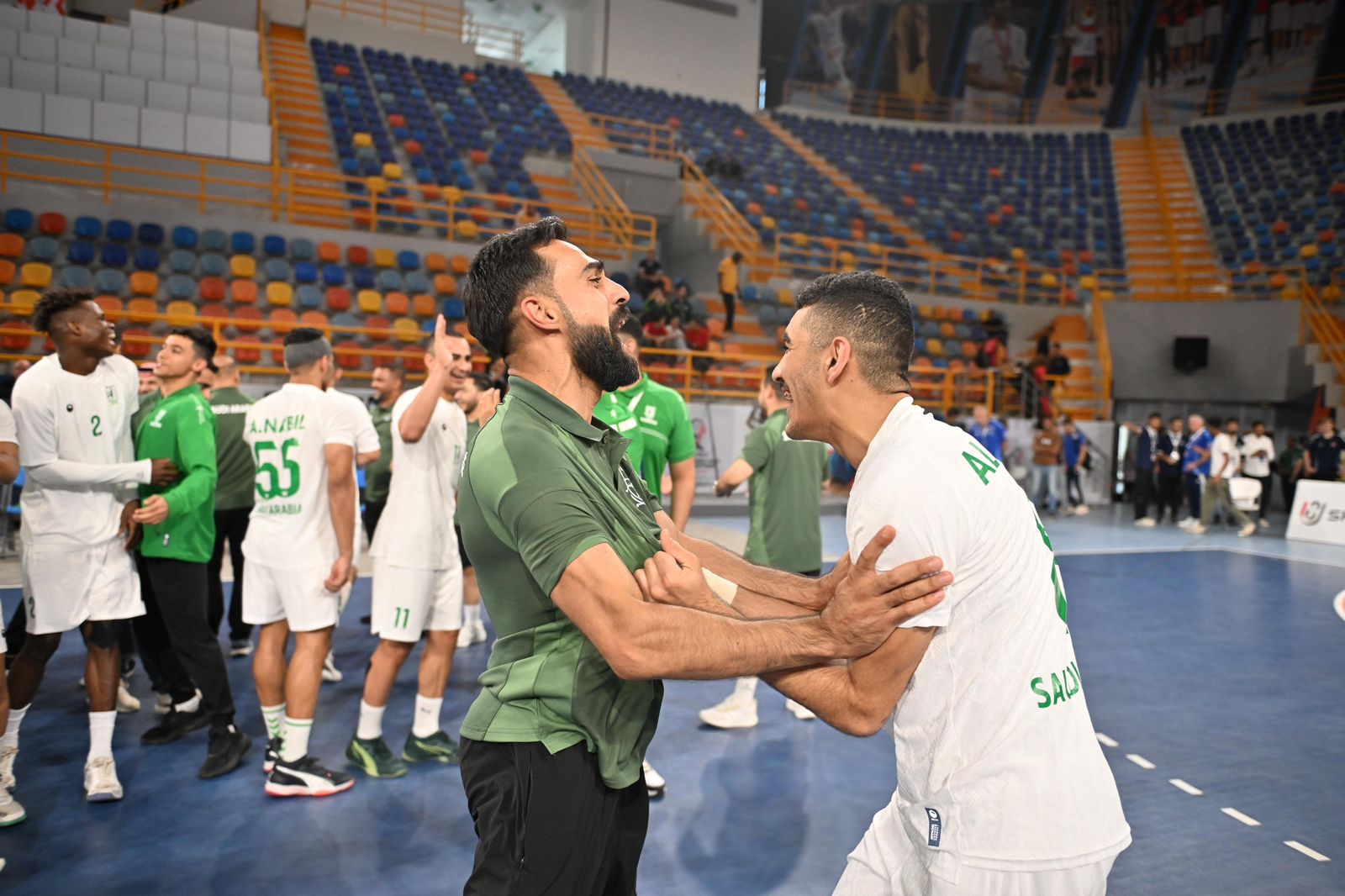من جانبه، رفع رئيس الاتحاد السعودي لكرة اليد الأستاذ حسن بن نصر هلال، أسمى آيات الشكر والعرفان لسمو وزير الرياضة رئيس اللجنة الأولمبية والبارالمبية السعودية صاحب السمو الملكي الأمير عبدالعزيز بن تركي الفيصل، ولسمو نائبه الأمير فهد بن جلوي بن عبدالعزيز بن مساعد، على دعمهما المستمر ومتابعتهما الدقيقة لمسيرة المنتخبات الوطنية، مؤكدًا أن هذا التأهل والظهور المشرف ثمرة لاهتمام القيادة الرياضية وحرصها على تهيئة كافة مقومات النجاح للرياضة السعودية، ومواءمة الخطط الاستراتيجية الخاصة باللجنة الأولمبية مع خطط الاتحاد، والتي تهدف إلى صناعة فريق بطل مستقبلاً وتقديم مستويات مميزة في أقوى بطولات العالم.