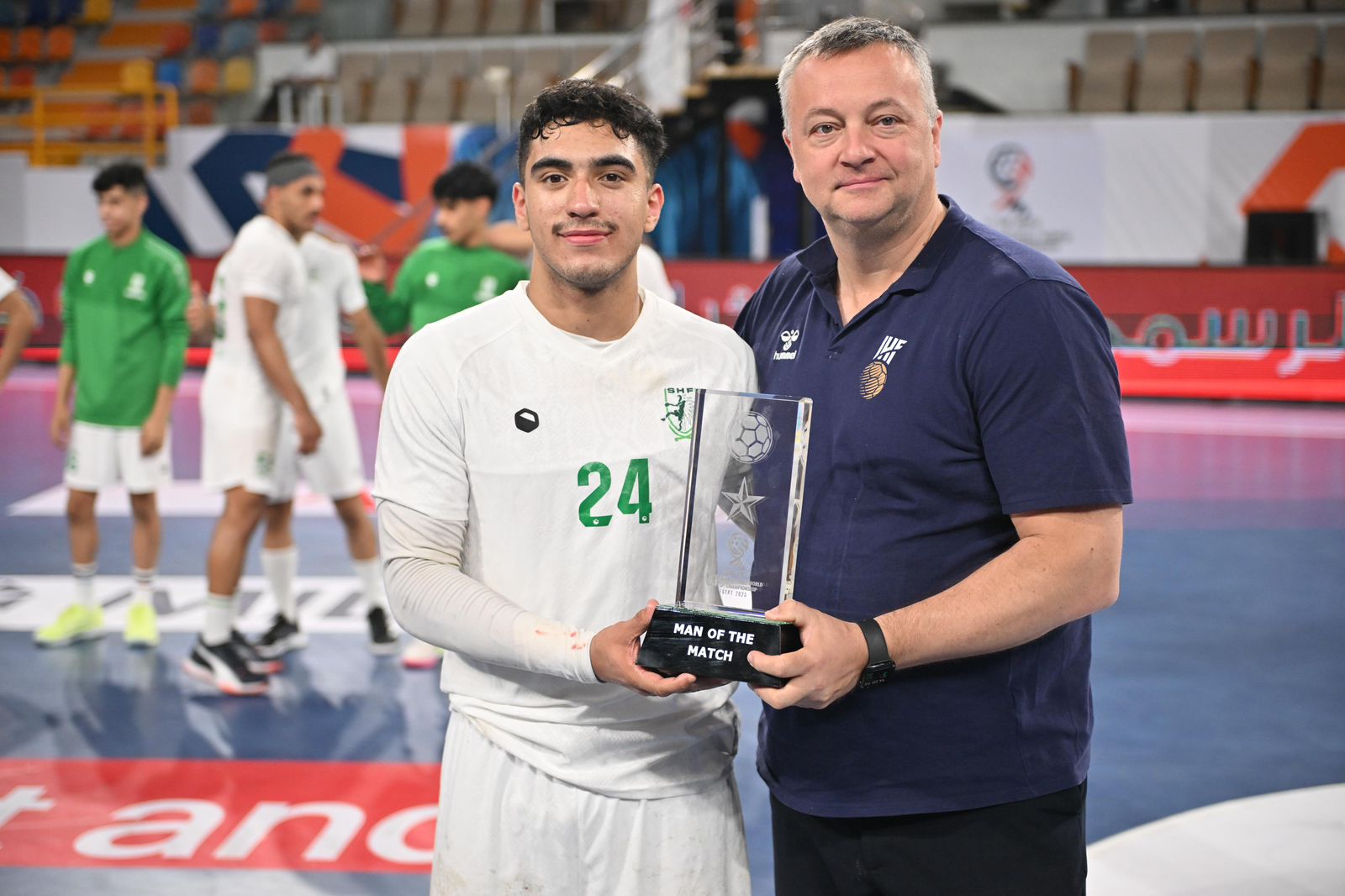 كما حاز حارس المنتخب السعودي سلمان المعيني على جائزة أفضل لاعب في لقاء البرازيل، ونال ذات الجائزة أحمد نبيل في لقاء غينيا، ويُعد ذلك إنجازًا يضاف لسجل الأبطال بحصد الأفضلية في مواجهتين من أصل ثلاث مباريات.