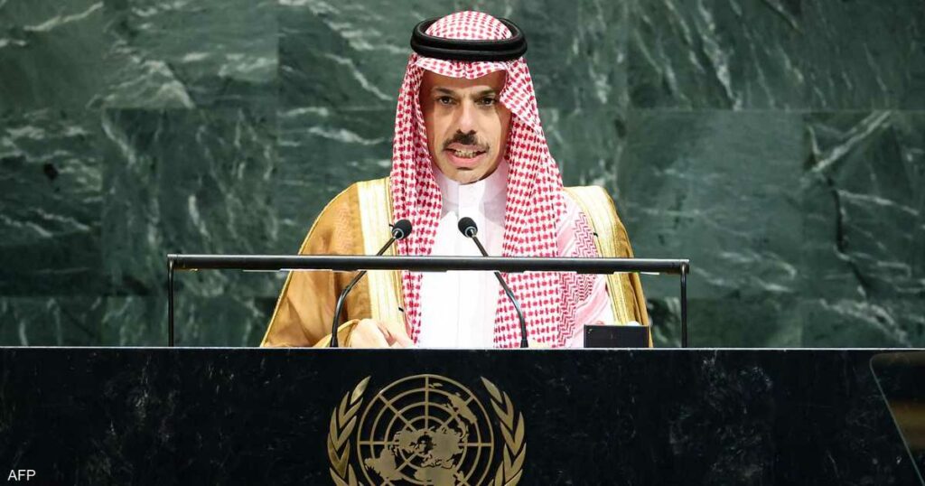 وأضاف الأمير فيصل، في كلمته أمام الجمعية العامة للأمم المتحدة أن “حل الدولتين هو الحل الوحيد، وعلى المجتمع الدولي تحمل مسؤولياته لإنهاء الصراع”، وذلك فيما يتعلق بالقضية الفلسطينية.
