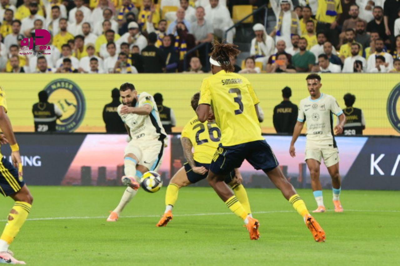 وجاءت المباراة قوية منذ الدقائق الأولى وسط حماس جماهيري كبير، حيث كاد كريم بنزيما أن يفتتح التسجيل مبكرًا في الدقيقة التاسعة بتسديدة قوية تصدى لها الحارس بينتو، قبل أن يعود النجم الفرنسي في الدقيقة 15 ليهز الشباك بتسديدة ذكية بعد عرضية متقنة من موسى ديابي، مانحًا الاتحاد التقدم الأول.