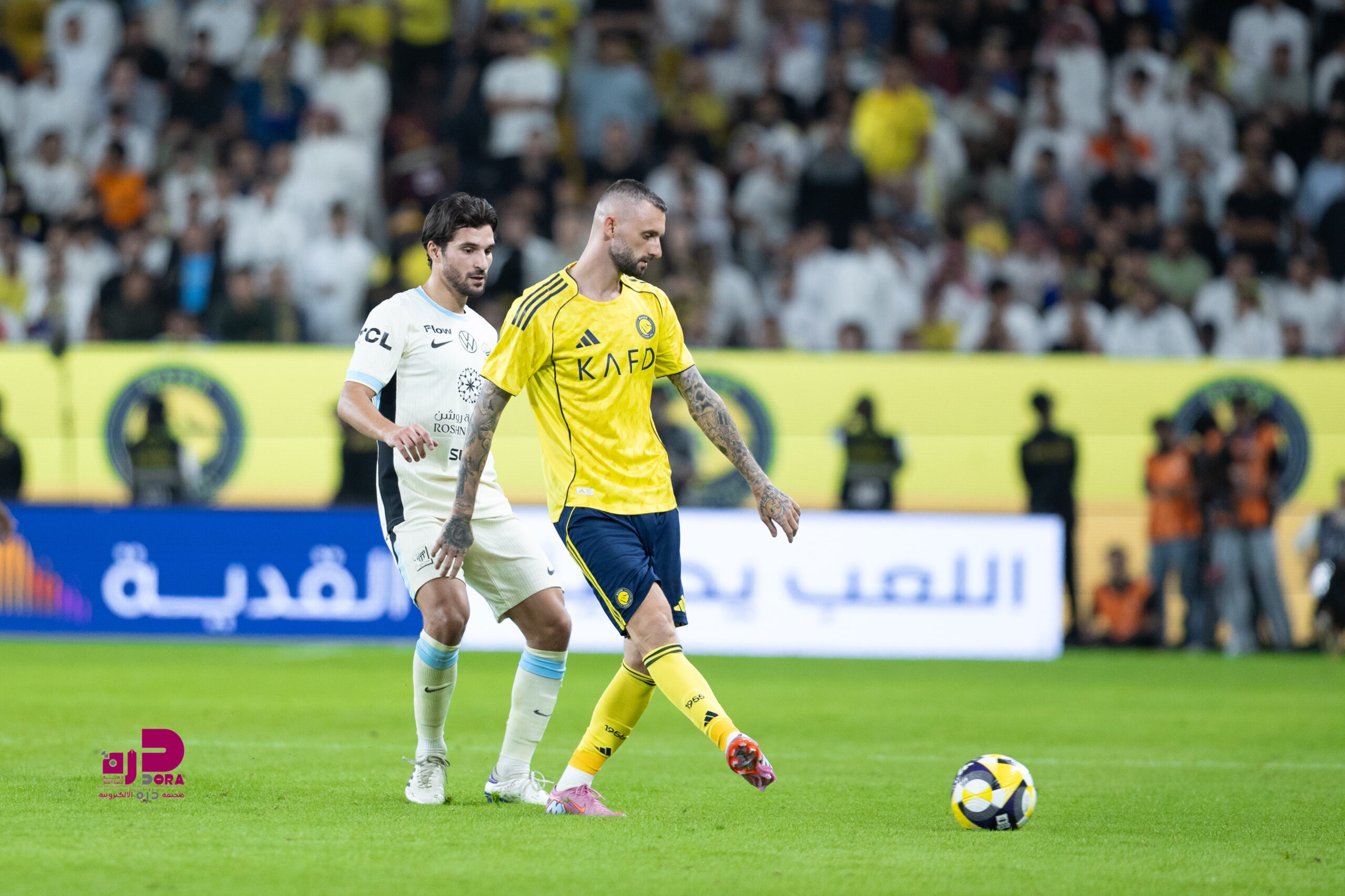 ورد النصر سريعًا عبر لاعبه أنجيلو الذي أدرك التعادل في الدقيقة 30 بعد تمريرة رائعة من كريستيانو رونالدو، وضعها بتسديدة صاروخية في مرمى رايكوفيتش. وفي الوقت بدل الضائع من الشوط الأول (45+2)، خطف حسام عوار هدف الفوز الثاني للاتحاد بعد تمريرة مذهلة اخترقت دفاع النصر، ليسدد الكرة بثقة داخل الشباك ويمنح فريقه الأفضلية قبل الاستراحة.