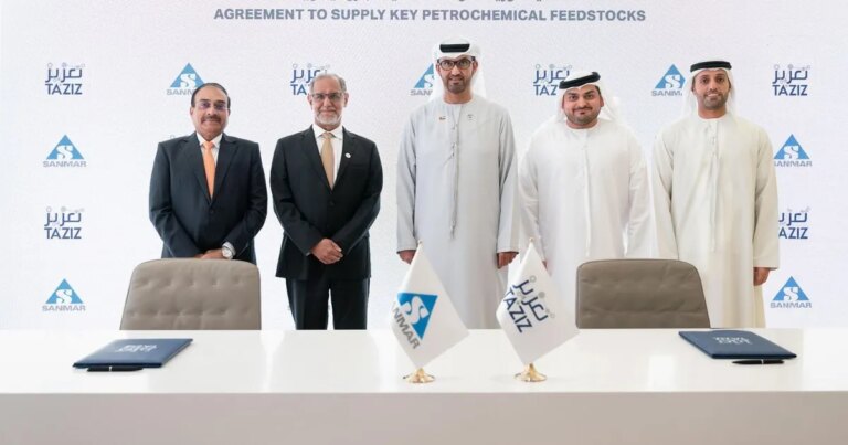 وقال مشعل سعود الكندي، الرئيس التنفيذي لشركة “تعزيز”، إن هذه الاتفاقيات تؤكد التزام “تعزيز” بأن تصبح مورّداً موثوقاً للمنتجات البتروكيماوية عالية الجودة للأسواق العالمية، لافتا إلى أن التعاون مع مجموعة “سانمار” يدعم خطط “تعزيز” الطموحة للنمو في أسواق مصر والهند، بالتزامن مع جهودها المستمرة للإسهام في تمكين النمو الصناعي وتعزيز التنويع الاقتصادي في دولة الإمارات.