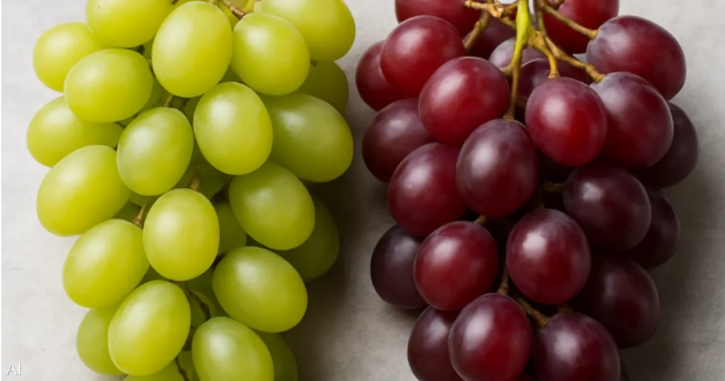 ويتشابه العنب الأخضر والأحمر في عدد السعرات الحرارية، ونسبة البروتينات، والدهون، والكربوهيدرات، والسكريات وغيرها من المعادن والفيتامينات الأساسية. ويحتوي العنب الأحمر والأخضر على العديد من مضادات الأكسدة، وهي موجودة خاصة في القشرة واللب والبذور، وتعرف بخصائصها الداعمة للقلب وللشيخوخة الصحية. وتشمل فوائد العنب: تقليل خطر الإصابة بأمراض القلب وعوامل الخطر المرتبطة بارتفاع ضغط الدم والكوليسترول. تعزيز صحة العينين عند تناوله بانتظام. دعم الصحة الإدراكية لدى الأصحاء والمصابين بضعف إدراكي بسيط. تعزيز صحة العظام والمفاصل. خصائص مضادة للالتهاب والميكروبات والسرطان. ويكمن الفرق الأساسي بين العنب الأحمر والأخضر في الطعم؛ فالكثيرون يفضلون حلاوة العنب الأحمر، بينما يميل آخرون إلى حموضة العنب الأخضر، وفقا لما ذكره موقع “فيري ويل هيلث”. كما أن العنب الأحمر والأخضر يختلفان في تركيز المركبات التي تعزز صحة الجسم، مثل الريسفيراترول والأنثوسيانين. الريسفيراترول يوجد الريسفيراترول في العنب الأحمر والأخضر، لكن العنب الأحمر والبنفسجي يحتويان على كمية أكبر. ويعرف الريسفيراترول بخصائصه المضادة للأكسدة والالتهاب، ودوره في حماية القلب، والأعصاب، والوقاية من السرطان. الأنثوسيانين ويُعرف العنب الأحمر بغناه بالأنثوسيانين، وهي أصباغ تعطي للفاكهة لونها المميز. وتشمل خصائصه مضادات الأكسدة، ومضادات السكري، ومضادات السرطان، ومضادات الالتهاب والميكروبات. وتستخدم الأنثوسيانينات المستخلصة من قشر العنب كملون غذائي طبيعي في الأطعمة والمشروبات ذات اللون الأرجواني.