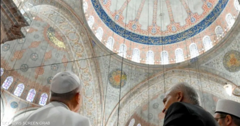 تعد زيارة جامع السلطان أحمد هي أول زيارة لبابا الفاتيكان إلى مكان عبادة إسلامي منذ انتخابه في مايو الماضي على رأس الكنيسة الكاثوليكية.