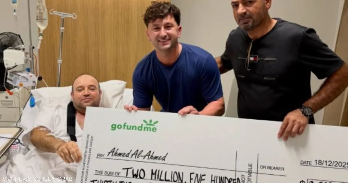 وقُدّم شيك بقيمة 2.5 مليون دولار للأسترالي، أو ما يعادل 1.65 مليون دولار أميركي، إلى أحمد الأحمد، وهو من أصول سورية، تقديرا لشجاعته بعد أن تمكن من التصدي لأحد المهاجمين وتجريده من سلاحه خلال الهجوم الذي وقع في منطقة بونداي بأستراليا.
