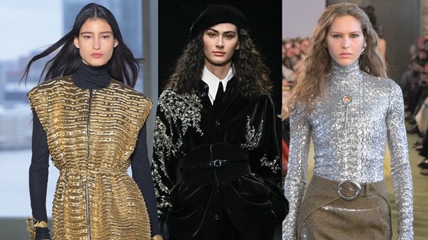 يشكّل عنصر البريق المتلألئ محوراً أساسياً في أزياء السهرات والاحتفالات، لدى كثير من المصممين، الذين استغرقوا في تطعيم الفساتين بالترتر اللامع بأحجامه وألوانه المتنوعة، من الصارخ إلى الهادئ. وقد يقتصر البريق على الأكمام فقط؛ ليمنح الفستان لمسة ضوء خافتة، وأحياناً يُعْتَمَدُ في بلوزة مرصعة، تُنسّق مع بنطلون بسيط؛ لتوازن بين الأناقة النهارية، والتوهج المسائي. أما مَنْ تفضل إطلالة أكثر هدوءاً، فتتجه نحو الأسود المكسو ببريق الغليتر، الذي يلمع كنجوم بعيدة تضيء الأفق على استحياء.