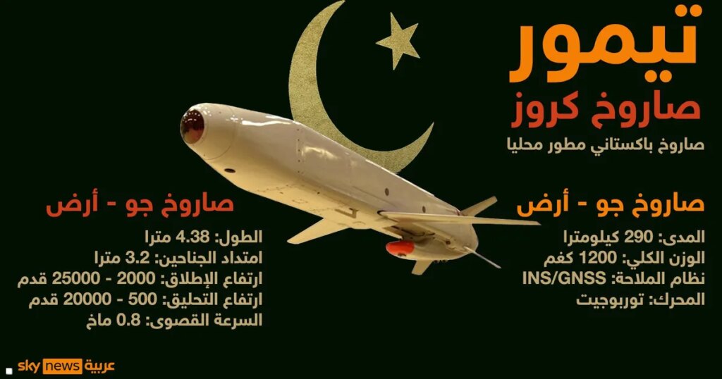 وطبقا لبيان صادر عن الجيش الباكستاني، فإن صاروخ “تيمور” الجوال، المطلق من الجو قادر على استهداف أهداف العدو البرية والبحرية بدقة عالية على مدى 600 كيلومتر.