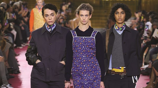 في أزياء «ميو ميو» (Miu Miu)، لربيع وصيف 2026، تتناول ميوتشيا برادا مفهوم العمل بهدوء وأناقة، مقدمةً رؤية إنسانية صادقة، تتجاوز حدود الوظيفة. وتحتفي مجموعة «At Work» بعمل النساء اليومي، بما يحمله من: جهد، ورعاية، وقوة غير معلنة؛ فتحوّل ما هو بسيط، وغير مرئي، إلى قيمة جمالية راقية، تعبر عن الاستقلالية، والتمكين.