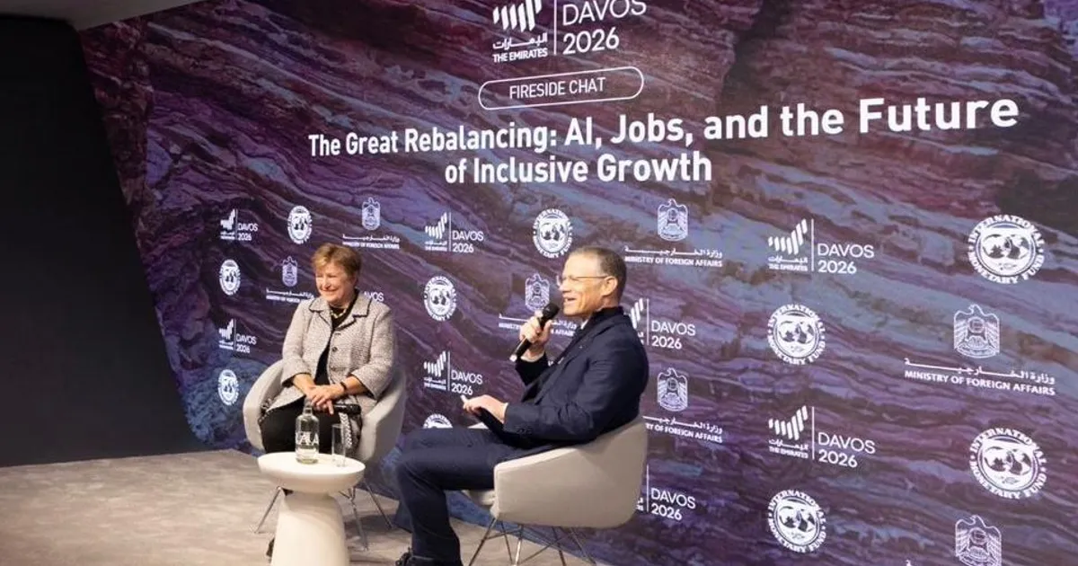 الإمارات نموذج رائد في إدارة التحول التكنولوجياستضافت دولة الإمارات العربية المتحدة حواراً رفيع المستوى في جناحها ضمن أجندة الاجتماع السنوي للمنتدى الاقتصادي العالمي 2026 في دافوس، جمع قادة عالميين لمناقشة التحولات المتسارعة في الاقتصاد العالمي، وتأثير الذكاء الاصطناعي على أسواق العمل، ومستقبل النمو الشامل في ظل التغيرات الاقتصادية والتكنولوجية المتسارعة.وفي هذا الحوار الحصري بعنوان “التوفيق بين الذكاء الاصطناعي، والوظائف، ومستقبل النمو الشامل”، تناقش بدر جعفر، المبعوث الخاص لشؤون الأعمال والأعمال الخيرية لدولة الإمارات، مع كريستالينا غورغييفا، المديرة العامة لصندوق النقد الدولي، عن الفرص والتحديات المصاحبة لهذه التغيرات الواسعة وتحدد التطلعات الاقتصادية في المراحل المقبلة.