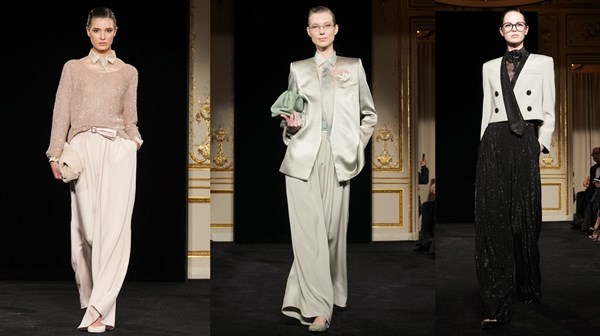 وظهرت ملامح البذخ بشكل انتقائي واضح، ففساتين «ميل فوي Mille-feuille»، المكوّنة من طبقات مرصعة ببلورات دقيقة لمعَت بخفة مضيئة، بينما بدت الصدوريات المهيكلة كأنها تحوم فوق تنانير طويلة مبنية من ألواح بيضاوية. وارتديت القطع المحاكة المزيّنة بالترتر، بسهولة، فوق سراويل بالاتسو، ما طمس الحدود بين الأزياء الراقية، والملابس اليومية.