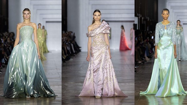 اختار طوني ورد قلب غاليري الجيولوجيا والمعادن بباريس، القاعة المعدنية لتتدفق تصاميمه بداخلها؛ لتعزيز تجربة الضوء على أجساد العارضات، بالتصاميم المنحوتة التي تحاكي فن العمارة، حيث برزت فساتين السهرة بأنماطها المتنوعة، وتطريزاتها الخلابة، وأقمشتها الانسيابية الساحرة.