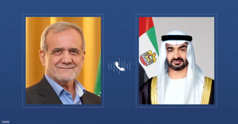 وبحث الشيخ محمد بن زايد آل نهيان والرئيس الإيراني خلال الاتصال علاقات البلدين وسبل تعزيزها بما يخدم مصالحهما المشتركة ويعود بالخير على شعبيهما.