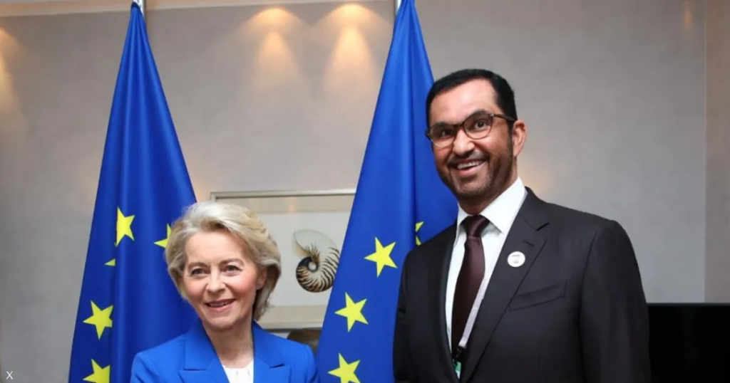 و في منشور عبر منصة “إكس” قالت فون دير لاين إنها عقدت “اجتماعا جيد للغاية مع الدكتور سلطان الجابر”.