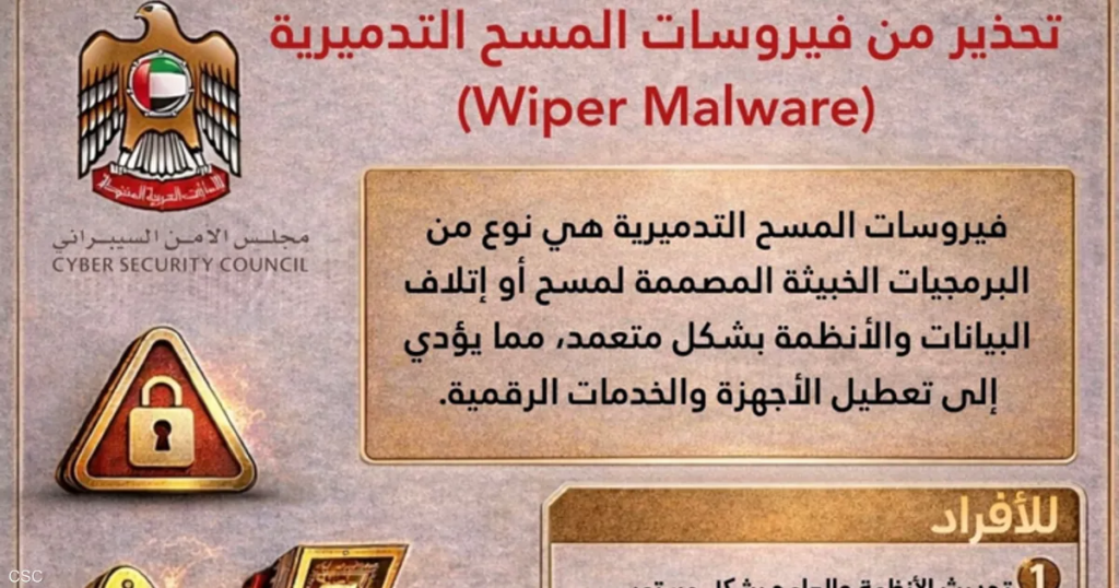 - الإمارات.. تحذير من فيروسات تمسح البيانات وتعطل الأنظمة