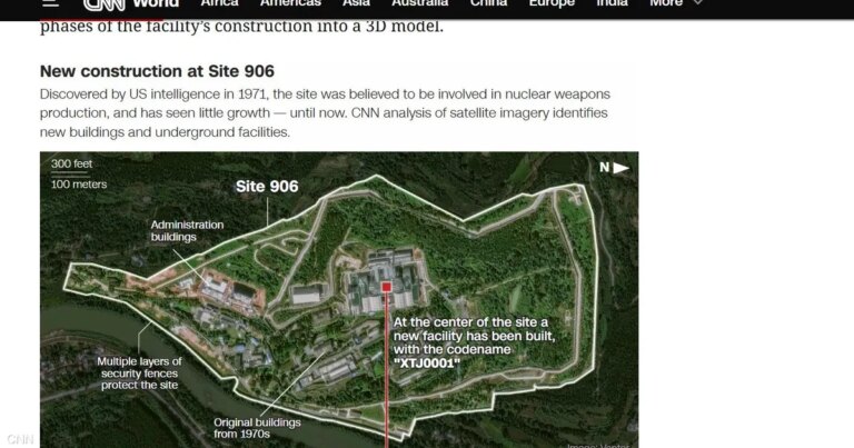 ومن بين أبرز مظاهر التوسع، بحسب “سي إن إن”، توسيع موقع نووي تعرفه وكالة الاستخبارات المركزية الأميركية بـ906، في مقاطعة سيتشوان الصينية، بعد إخلائه من السكان وتسويته بالأرض.