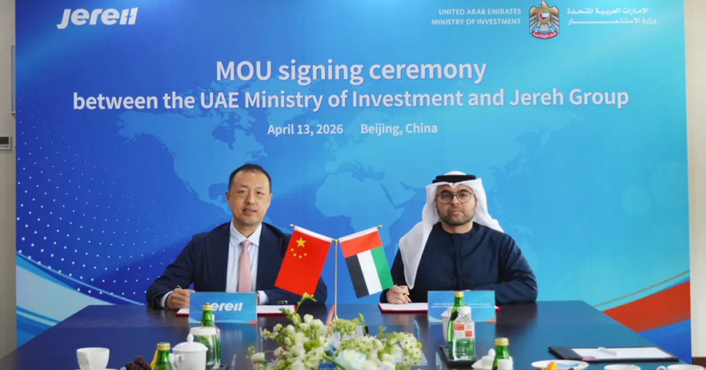 وقّع مذكرة التفاهم كلٌ من محمد عبد الرحمن الهاوي، وكيل وزارة الاستثمار في دولة الإمارات؛ ولي ويبين، الرئيس التنفيذي لمجموعة “جيريه”.