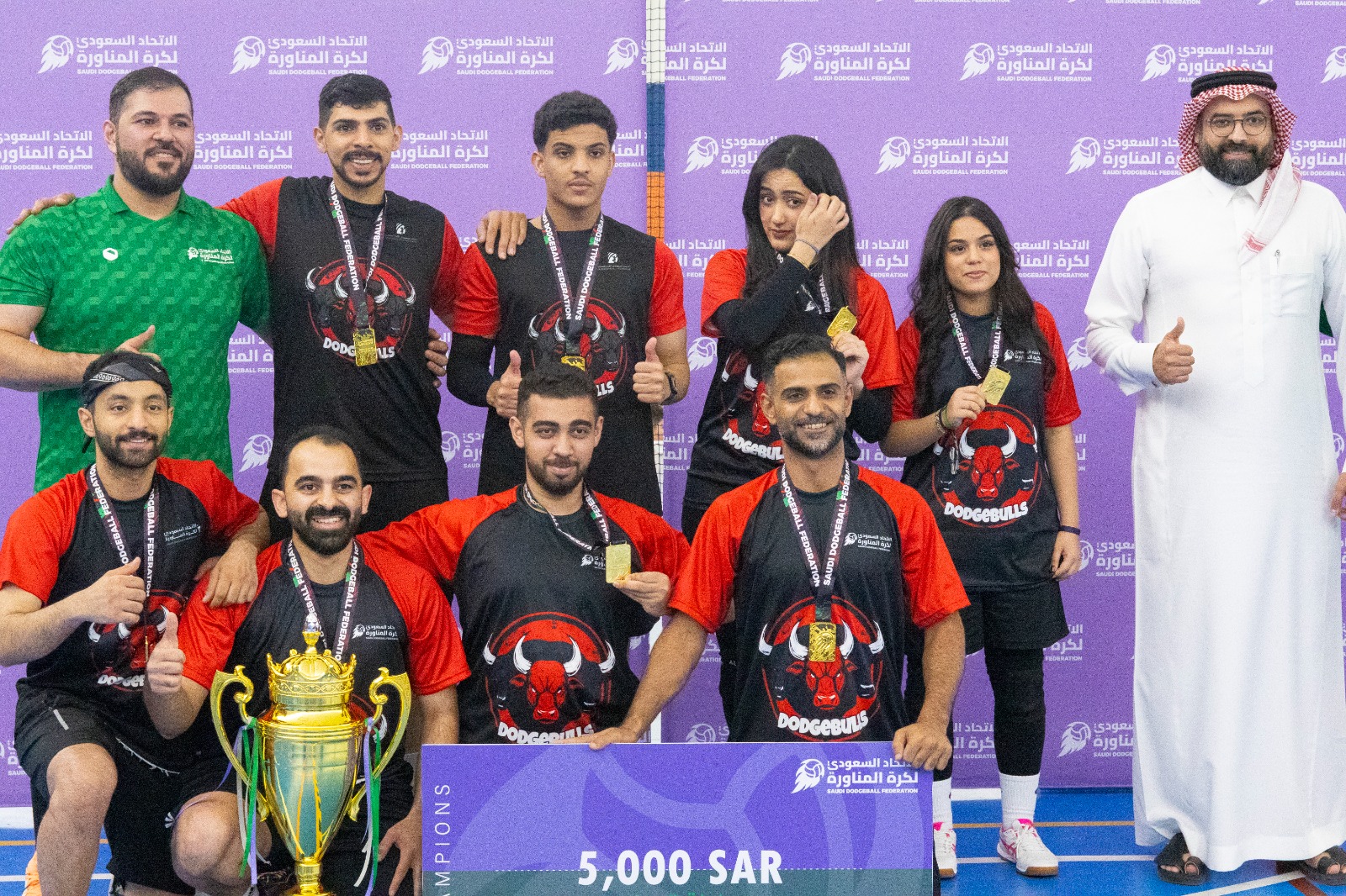 وحقق فريق Dodgebulls المركز الأول في منافسات فئة المختلط وجائزة قدرها 5 آلاف ريال، بينما حل ثانيًا فريق Spiders ليحصل على جائزة قدرها 3 آلاف ريال، فيما حصل فريق الرمية الملتهبة على المركز الثالث وجائزة قدرها 2000 ريال، وفي فئة تحت 15 عامًا حقق فريق الأساطير المركز الأول وجائزة قدرها 5 آلاف ريال، بينما حصل فريق الأبطال على المركز الثاني وجائزة قدرها 3 آلاف ريال، وحصد فريق الفرسان المركز الثالث وجائزة قدرها 2000 ريال.